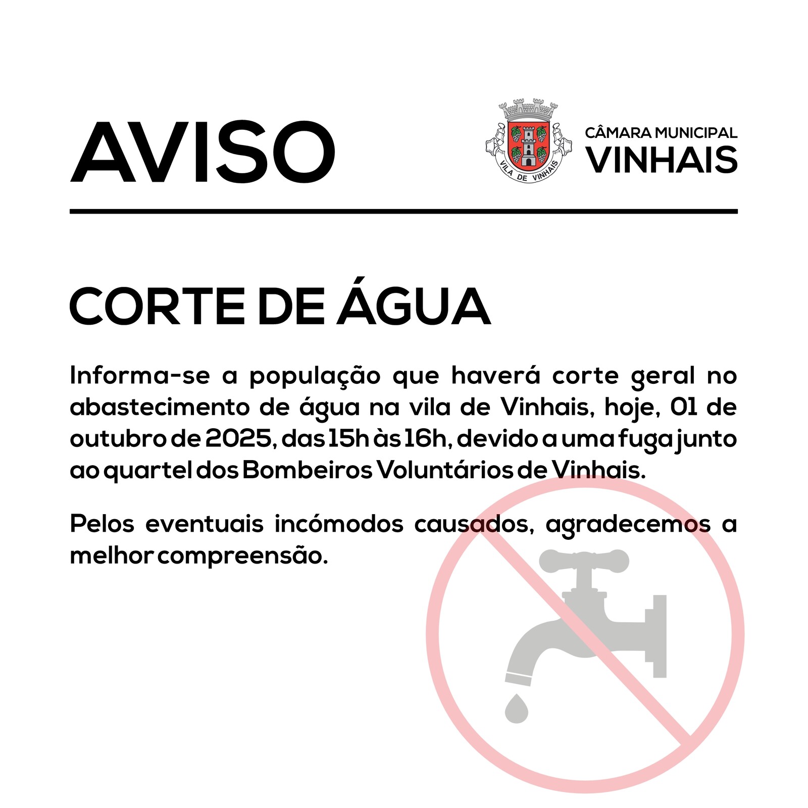 - AVISO - CORTE DE ÁGUA