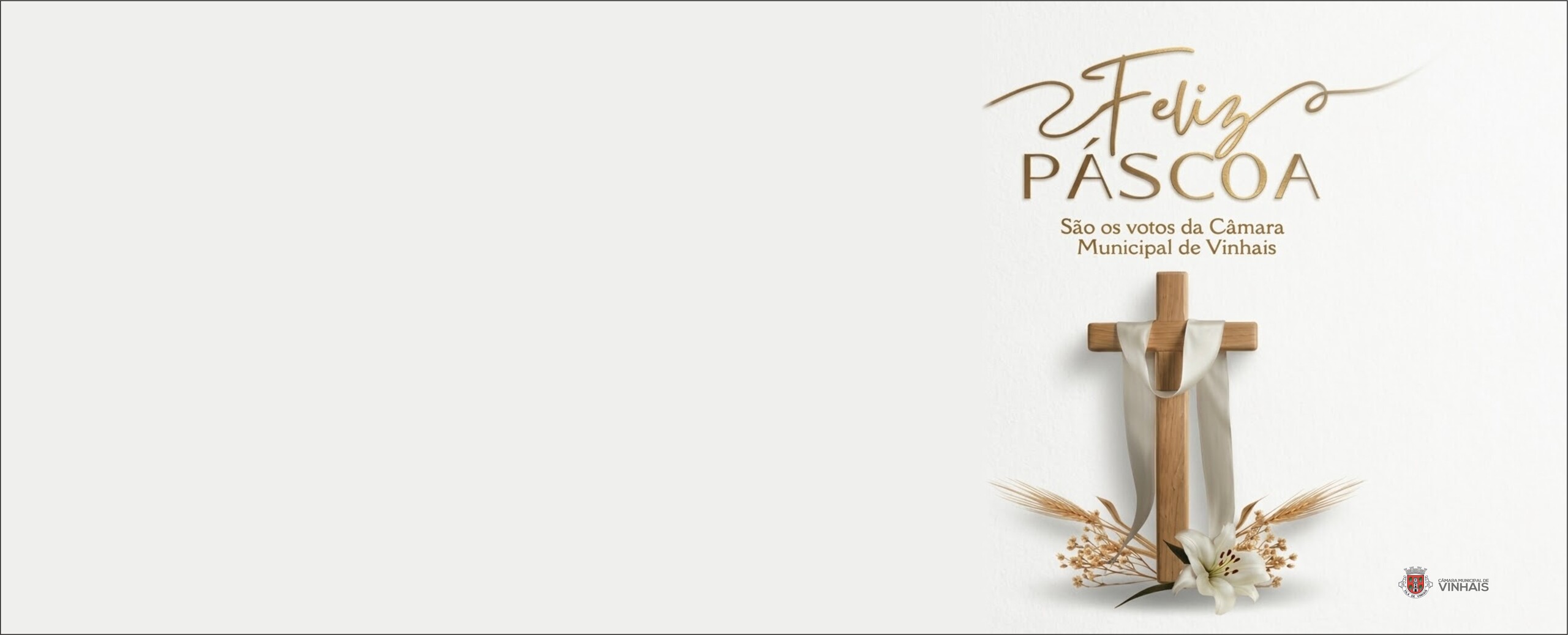 Quero, em meu nome pessoal e em nome de todo o executivo da Câmara Municipal, endereçar a todas e a todos os vinhaenses os mais sinceros votos de uma Páscoa Feliz, repleta de paz, amor e, acima de tudo, com muita saúde.